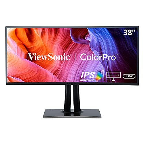 ViewSonic VP3881 38-Inch Premium IPS WQHD+ Curved Ultrawide Monitor with ColorPro 100% sRGB Rec 709, 14-bit 3D LUT, Eye Care, HDR10 Support, USB C, HDMI, USB, DisplayPort for Home and Office